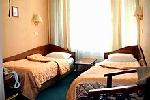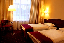 Measuring 18 square meters, the Hotel Rossiya's Superior Twin Rooms have recently been renovated, and not only boast rather more elegant interiors and furnishing than standard rooms, but also amenities that approach international 3-star standards. Furniture includes twin single beds, writing desk, two armchairs and a large wardrobe.