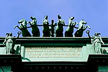The large, semicircular space is a superb example of 19th century high neoclassicism and forms an organic ensemble with Ploshchad Ostrovskogo and Ulitsa Zodchego Rossi.